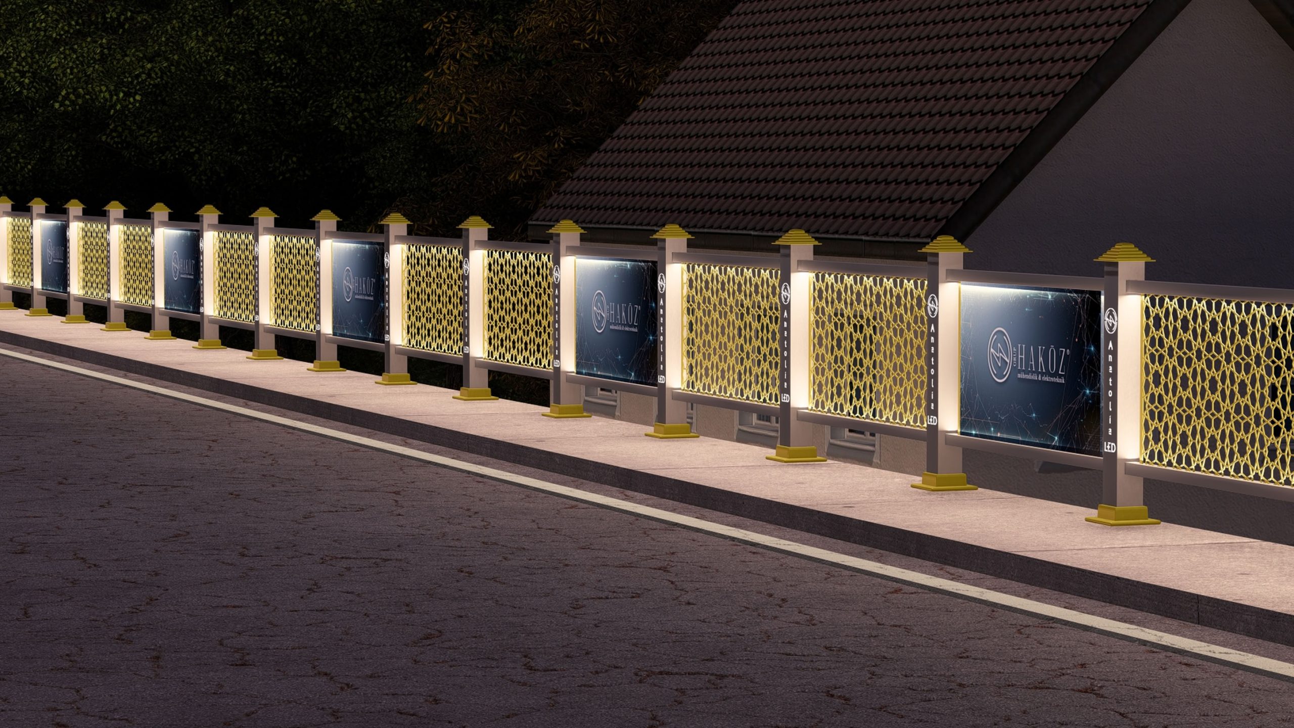 CNC kesim Motif ledli, ışıklı Logolu paslanmaz eksiksiz bir alüminyum dekoratif korkuluk.